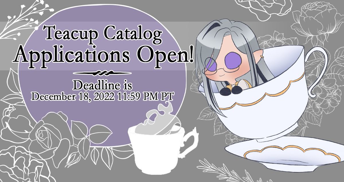 Happy New Year!! 🎉🎊📗 Today is the last day for applying to the Teacup Catalog! This is the last art-centric gift project open for the (new) year so don't miss out! More info & app here! vespernoirbday2023.carrd.co #VespART #Vesfriends #VesperNoir