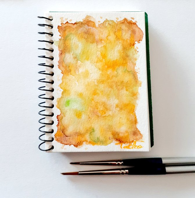 カドミウムイエローディープ🖌️ (私が使ってる絵の具の色その⑧) #絵描きさんと繫がりたい #水彩画 #アナログ絵 #アナログ絵描きさんと繋がりたい #イラスト好きと繋がりたい #watercolour #ミニスケッチブック #ミニ絵 #新作 #水彩 #透明水彩 #ホルベイン #抽象画 #1日1絵 #vifArt #マルマン