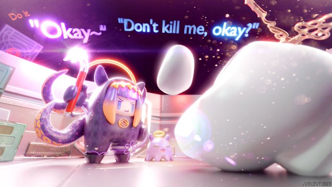 Kronii :"Don't kill me, okay?" Ancient one :"Do it" Ina :"Okay~" to ancient one #inART #vinjimadethis