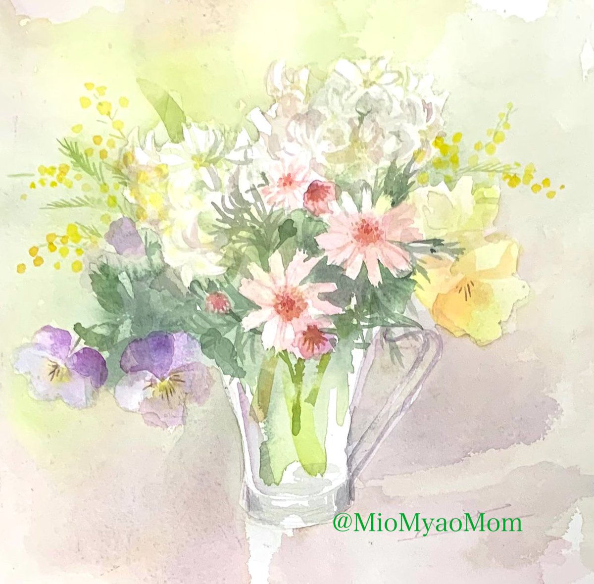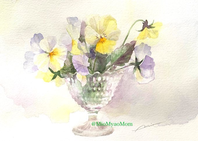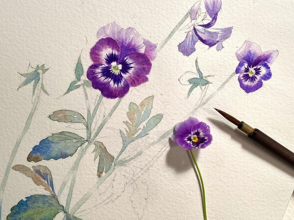 こんにちは。日曜日の水彩画。こちらはご注文いただいて描きました。ありがとうございました。I was commissioned to paint this small work of viola. Thank you! #水彩画 #日曜美術館 #watercolour #sundaywatercolours #SundayMorning #viola #ビオラ