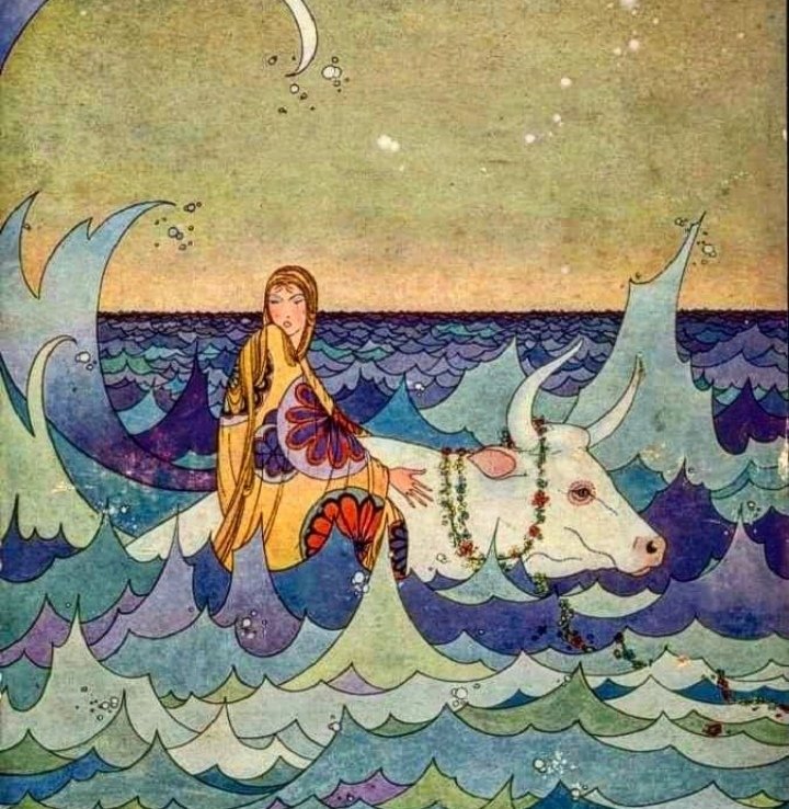 Europa and the Bull - Nathaniel Hawthorne's Tanglewood Tales by Virginia Frances Sterrett, 1921 #virginiafrancessterrett #tanglewoodtales #illustration #europaandthebull