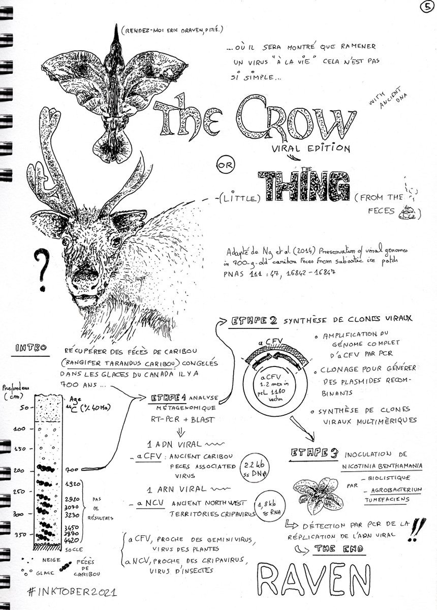 Jour 5/Day 5 - #RAVEN - The Crow (Viral Edition) #inktober #inktober2021 #sciart #paleomicrobiology #virus #svt