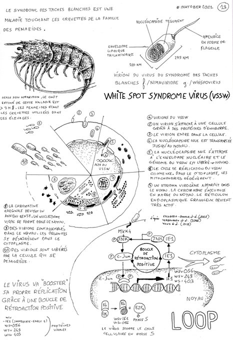 Jour 19/Day 19 - LOOP - White Spot Syndrome Virus - #inktober #inktober2021 #sciart #svt #virus #virology #biomol #molecularbiology #agronomie #crevettes