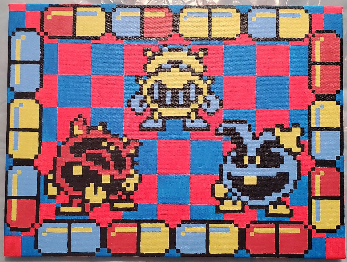 Viral. 12x16. See next post for a UV light test! It's a real shame most of you will never get to see this piece in real life. The photos you take of it do it absolutely no justice. #virus #drmario #pixelart #acrylicpainting #covid19 #vaccine #blacklight