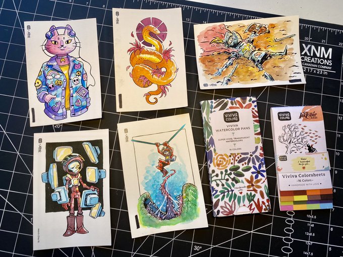 Inktober Viviva 2021 Postcards Days 5-7 #inktober2021 #inktober #viviva #vivivainktober #vivivacolorsheets #traditionalpainting