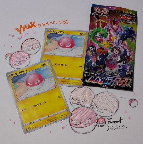 【告知】12/3発売の #ポケモンカードゲーム ハイクラスパック #VMAXクライマックス にて ビリリダマ 再録頂きました。よろしくお願いします。 ラフ出す時 どこのどことは書かなかったけど…発電所です。色々思い入れのあるカードで、再録してもらえて 凄く嬉しい。。。