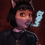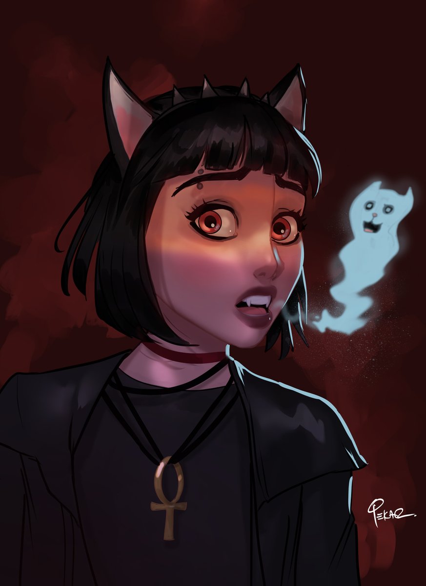 I actually did something really different coloring-wise this time. I read some guides about shading with warm colors, then cool colors. I'm not sure if I did it right, but I do like the results still🎃 #cutieSaturday #vnlink #visualnovel Miko belongs to @ArimiaDev