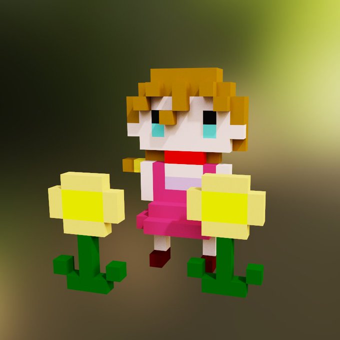 おはようございます✨ ボクセルアートで少女とひまわりを作成してみました😄 #3dcg #voxcel #art #illustation #photo #ボクセルアート #Magicavoxel #イラスト #ココナラ #アート好きな人と繋がりたい #イラスト好きな人と繋がりたい #アイコン #NFTs