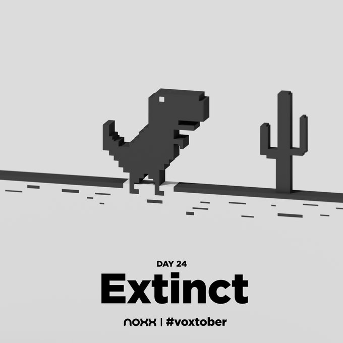 Day 24 Extinct - I swear I want theses dudes back. #voxelart #voxels #magicavoxel #isometric #voxtober #inktober #3dart