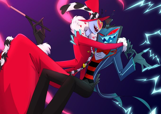 The piece I did for the hazbin fancalendar! Purple colors, my beloved #hazbinHotel #voxval #staticmoth