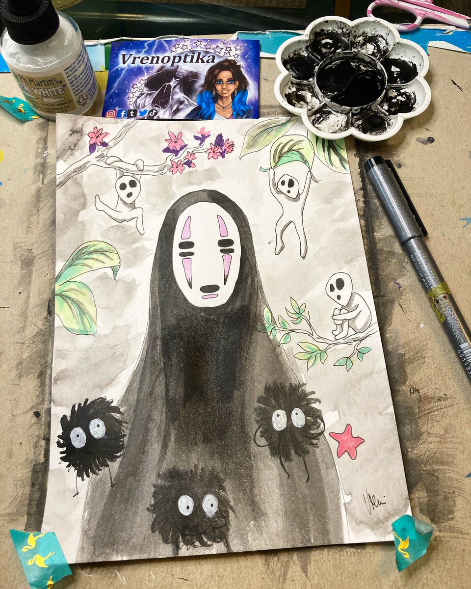 Inktober Day 6: Spirit A lil Ghibli Crossover #inktober2021 #Inktober #inktober2021day6 #spirit #noface #ghiblitober #inkwash #vrenoptika #animeart