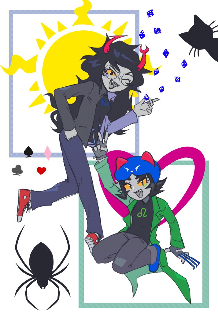 Let's pretend it's still 8/8! 🙏 So... I drew Vriska and Nepeta. #homestuck #home22tuck #vriskaserket #nepetaleijon