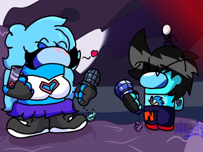(First drawing of the year!) Skyblue the impostor Vs Nikolai the crewmate! It's cursed but looks good and i hate how effort i gave it into this Skyblue by: @Chikiababy1 #artistsontwitter #skybluefnf #vsimpostorv4