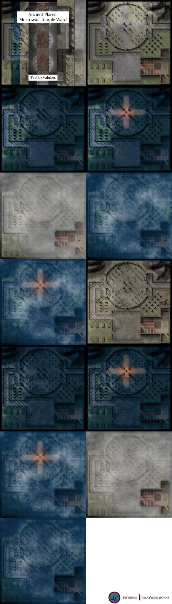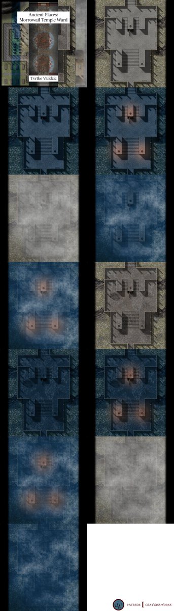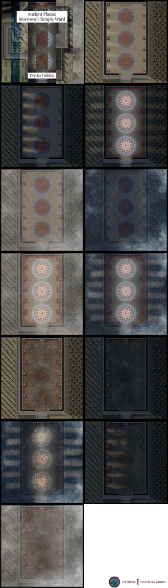 Temple Ward is now live! 3 base maps, 37 variations in total, allowing any DM to make more than a few adventures out of the maps. Give them a look! marketplace.roll20.net/browse/set/158… and dmsguild.com/product/393217…. #dndart #ttrpg #TTRPGs #ttrpgfamily #vtt #battlemap #dnd