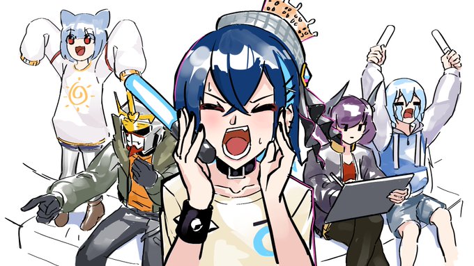 we chillin feat @potato7192 @neneneqo @MinsterPDuke @Dinoartforame @BabaVtuber #ぽてにゃと #neqoillst #dinaillust #vyrart