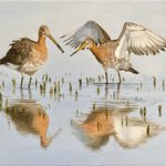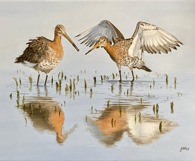 Finished 🎨 My new painting is called “Two godwits wading in shallow water” #godwit #bird #wadingbird #oilpainting #art #artistsontwitter