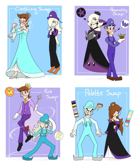 わるでじ💜🧡 #PrincessDaisy #デイジー姫 #Waluigi #ワルイージ #supermario #ワルデジ #イラスト #skeb での表情差分ver #commission