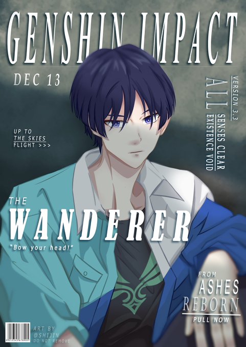 Hi, first time posting my art here on twt I made a fanart of Genshin Impact's "The Wanderer" in a magazine cover. 💙💚 Hope you like it ! ;) | Pls do not repost w/o the watermark | #genshinimpact #genshinimpactfanart #thewanderer #wanderergenshin #wandererfanart #scaramouche
