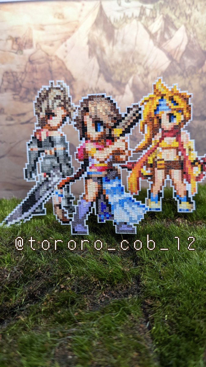 「ユ・リ・パ、ready」 ユウナができたのでパインリュックと共に☺️ #FF10-2 #FFX-2 #ドット絵 #pixelart #マスキングテープ #maskingtape #washitape