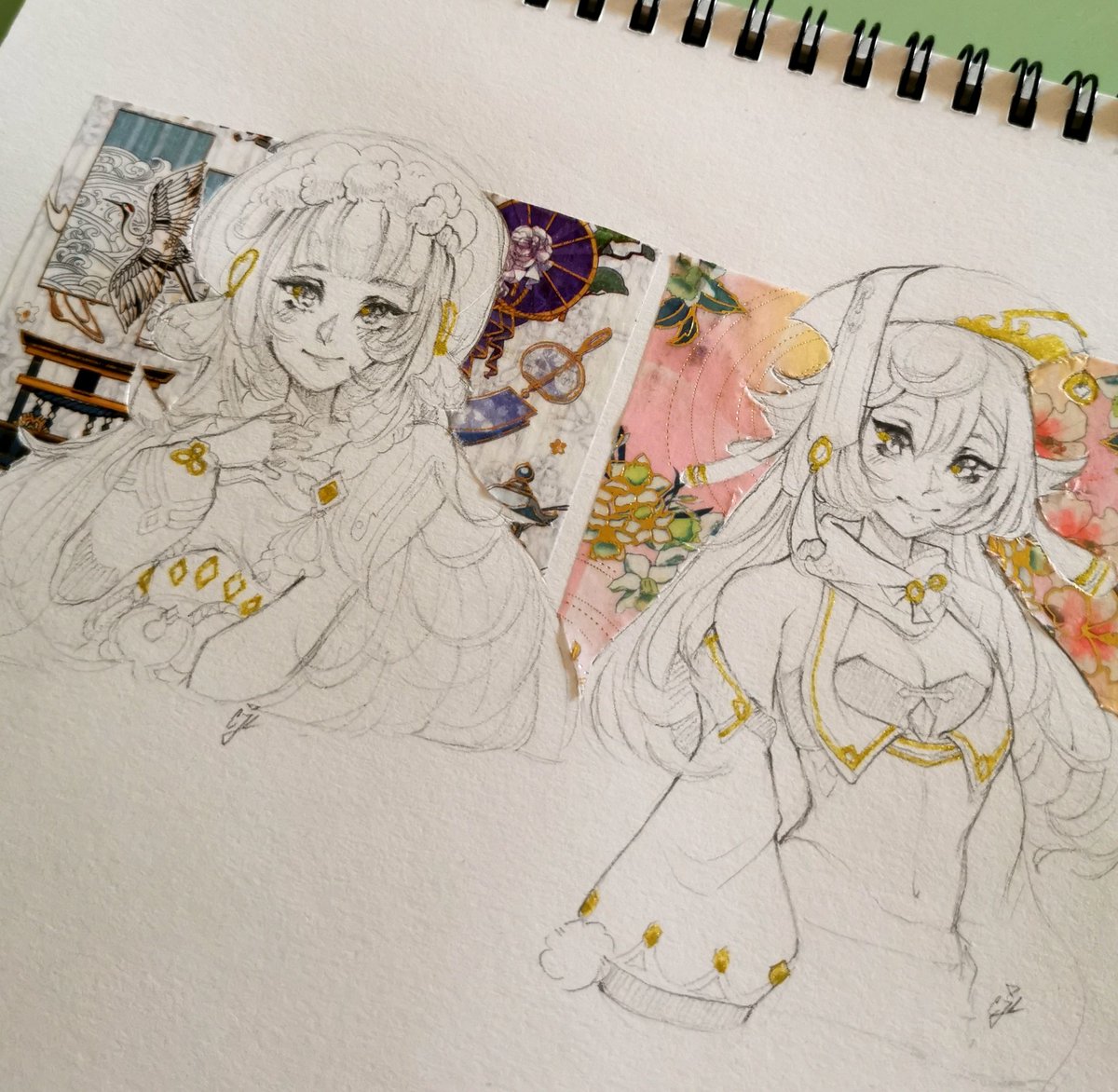 Man I forgot how hard cutting washi tape is, anyway have these #yunjin and #yanfei doodles #GenshinImpact #fanart #sketch #washitape #genshinimpactfanart