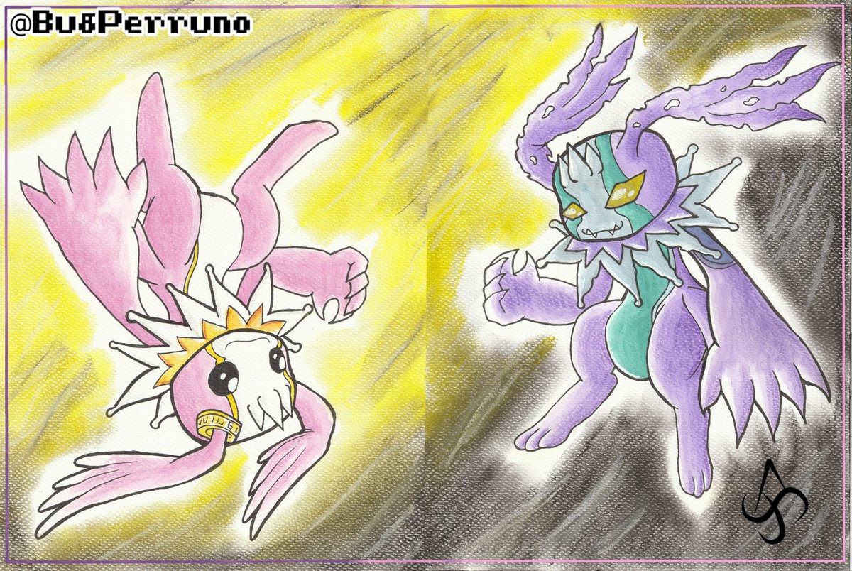 - Cherubimon/Kerpymon Ahora que ya están los dos puedo enseñaros como quedan juntos ^^ #watecolor #pink #digimonart #fanart #ケルビモン #デジモン #デジタルモンスター #angel #Digimon #chibi #chibiart #darkness