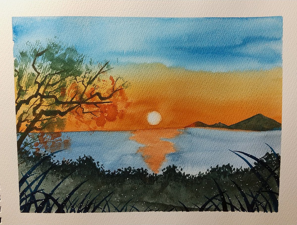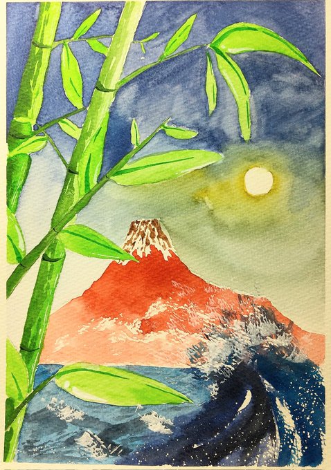 今日も描いています 赤富士 "Mount Fuji (Red)" もともと下手な絵ですが、この何日か明らかなスランプに陥っています! 次の絵からちょっと初心に戻ってみマッスル。 #水彩画 #watercoler #みんなで楽しむTwitter展覧会