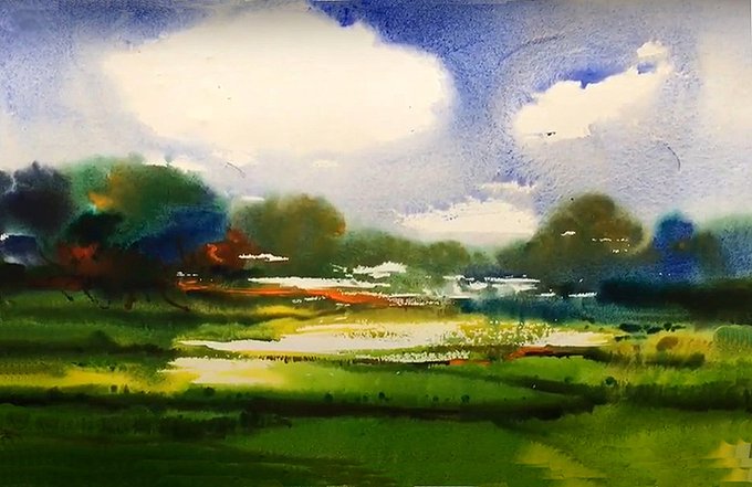 আমাদের গ্রাম আলো ঝলমলে প্রকৃতি খোলা আকাশ - বিস্তৃর্ণ ধানক্ষেত জলরং এর সাথে আমি কিছুক্ষন.................'' [ demo] ▶ youtu.be/fcbFjLV9DG4 Landscape in my Village '' Shahanoor Mamun Plein Air Watercolor Painting. . #Watercolourpainting #shahanoormamun #watercolordemo #art