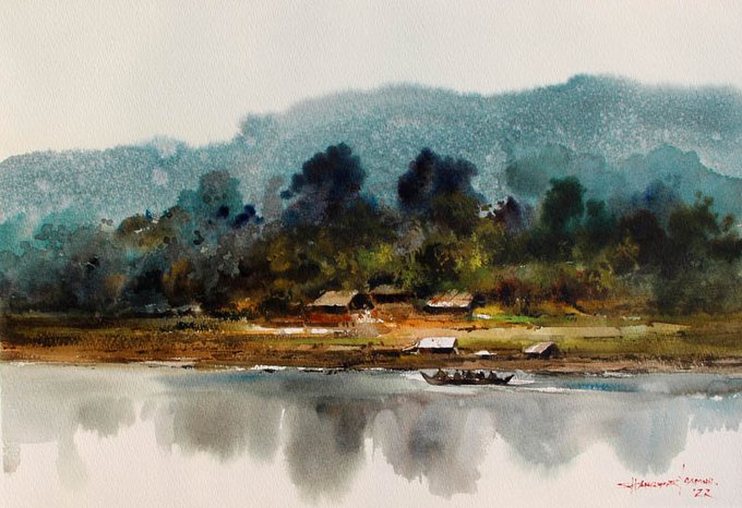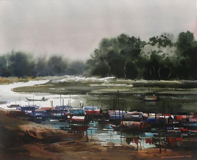 the quietness of river bank '' by Shahanoor Mamun watercolor painting size- 38cm x42cm. 2 0 2 0 . youtube.com/shahanoormamun . . . #artist #shahanoormamun #Watercolor #watercolordemo #watercolorbest #art #artists #artistsontwitter