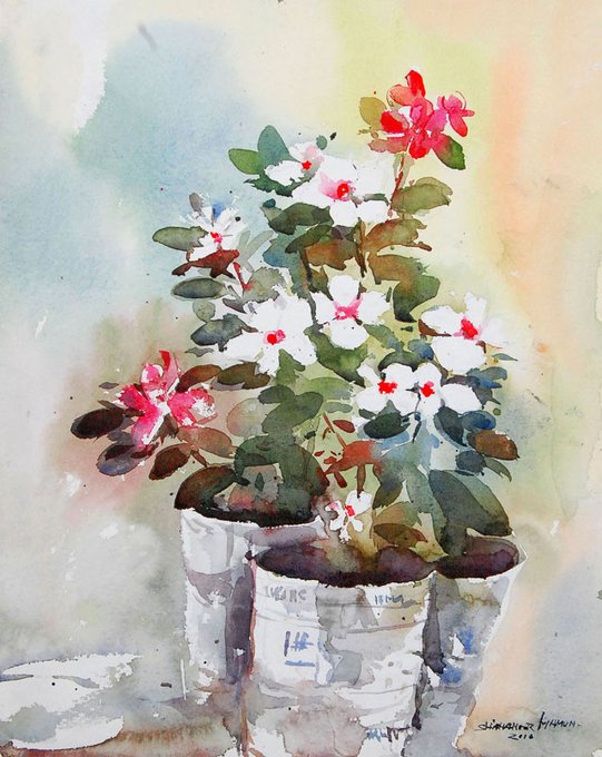 Watercolor flowers by Shahanoor Mamun - I created a slideshow for my YouTube channel about 200 works of watercolor paintings. Link - youtu.be/Ve4WJvIT9hQ . #watercolorpaintingsslideshow #shahanoormamun #paintingsslideshow #VintageArt #earlywatercolorpaintings_shahanoormamun