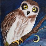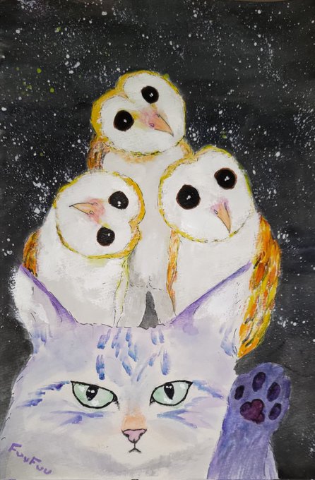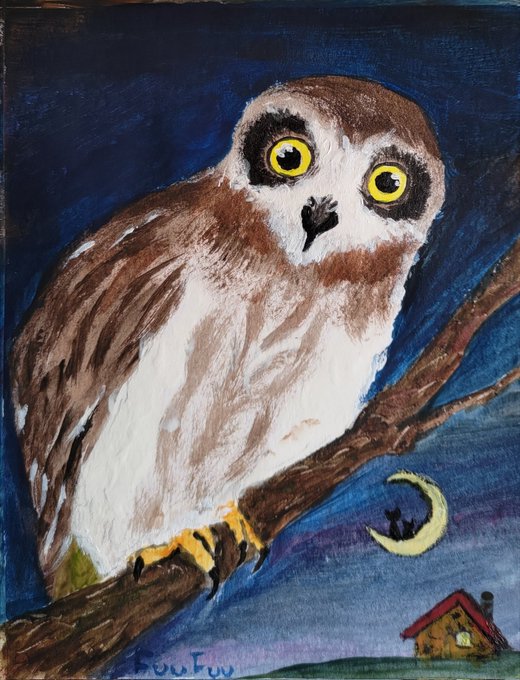 今日はフクロウ アオバズク🦉 幸運を期待してφ(.. )🎶 #フクロウ #アオバズク #鳥 #アクリル画 #みんなで楽しむTwitter展覧会 #watercolorpeinting #artwork