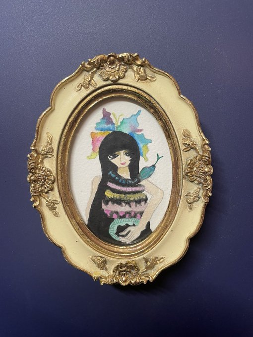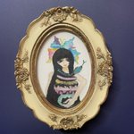 「友達」 #ミニチュア絵 #Miniaturedrawing #鉛筆水彩画 #水彩画 #pencildrawing #watercolorpeinting 2023.April.23rd 絵のサイズ楕円 8.8cm×6.6cm 額縁サイズ 11.7×9.4cm