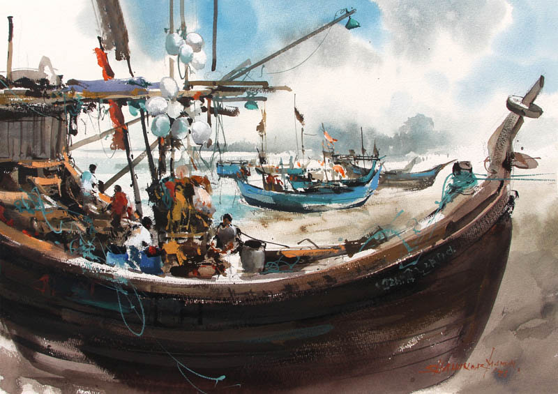 Fishing Boat' saint martin island. ভিডিও /demo - youtu.be/od2KMk6aPnE . plein air watercolor by Shahanoor Mamun Saint Martin's Island. . #pleinairwatercolordemobyshahanoormamun #watercolordemo #watercolorvideo #watercolor #pleinairpainting #pleinairwatercolor #shahanoormamun