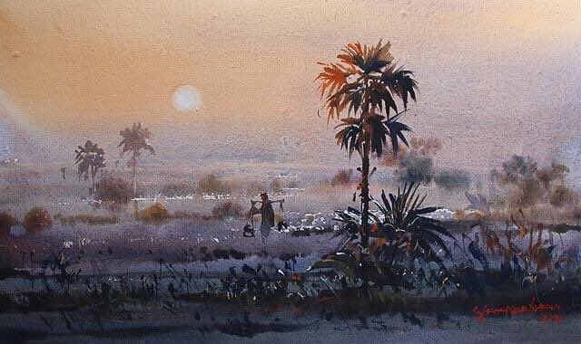 winter sunrise watercolor painting by Shahanoor Mamun demo link - youtu.be/xdZZp8RRG_Y . #wintersunrise #wintersunrisepainting #howtopaintwinter #howtodrawwinterlandscape #watercolorbyshahanoormamun #watercolorvideo #watercolormistscene #shahanoormamun #wintermorningpainting