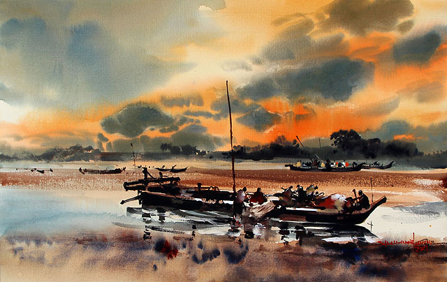 Mysterious sunset at the riverside. [demo] ▶️ youtu.be/xK4d7OK-XxA . Watercolor by Shahanoor Mamun #watercolordemo_by_shahanoormamun #watercolor_wetonwet_technique #watercolor #watercolordemo #watercolourdemo #watercolordemo_shahanoormamun #sunrisepainting #shahanoormamun