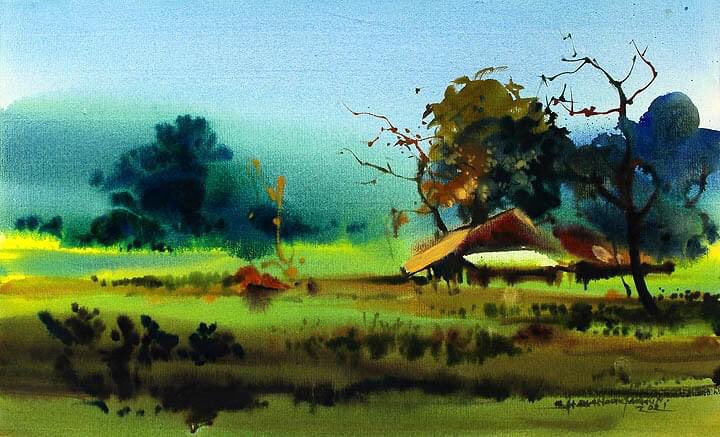 Landscape at Dapunia' Watercolor Painting. by Shahanoor Mamun [ demo link - youtu.be/oyfcB673-A0 ] . . . . #pleinairwatercolordemobyshahanoormamun #landscape_paintingdemo #watercolourdemonstration #shahanoormamun #watercolordemo #watercolorpainting #watercolorlandscapedemo