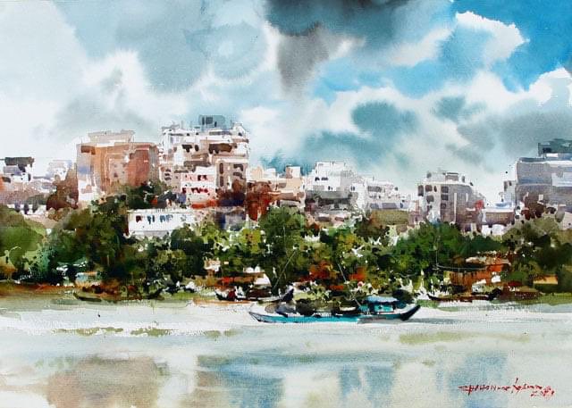 The Bosila city on the bank of River Buriganga. Watercolor by Shahanoor Mamun . Plein air demo ▶️ youtu.be/sLx0T7BC3lo painting size- 56cm x38cm . . #watercolorpainting #pleinairwatercolorpainting #watercolordemobyshahanoormamun #watercolourdemonstration