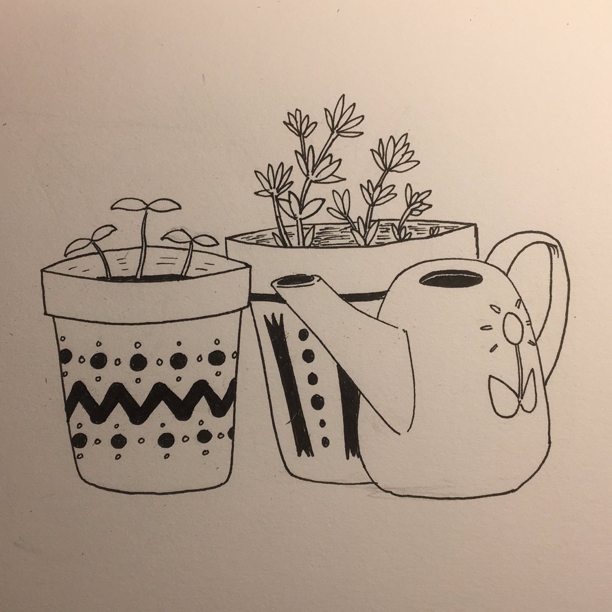 Inktober Day 20: Sprout Love the watering can. #inktober #inktober2021 #sprout #plant #wateringcan