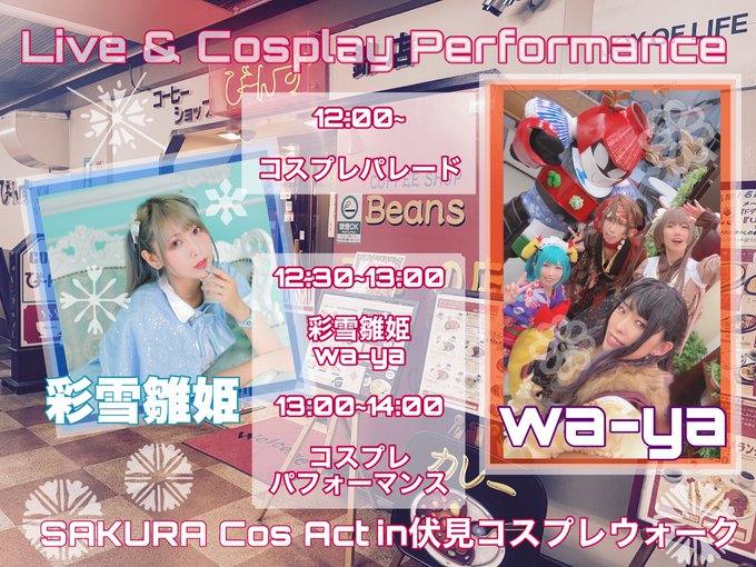 🌸お知らせ🌸 11/26土出演アーティストはこちらの2組!そしてそして、コスプレパフォーマンスにてご出演くださるチーム様をどしどし募集しております! よろしくお願いいたします!! #伏見コスプレウォーク #さくコス #フシコス #彩雪雛姫 #wayaなごやめし