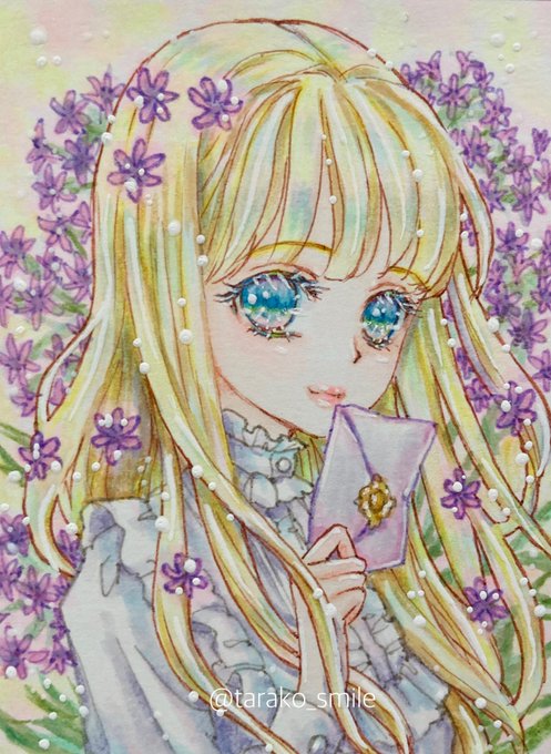 #webミニ原画展花少女図鑑 に参加させて頂きます🙇♀️ 会期:7/8 21時〜7/9 21時 会場: 各作家様BOOTH 主催:竜希☆様 花言葉がテーマの素敵なミニ原画展です💐 どうぞよろしくお願い致します🌻 #ミニ原画 #アナログ絵イラスト