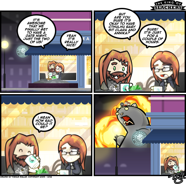 Are you sure it's okay to have Cthulhu baby sit Clara and Annika? 🐙 #comic #webcomics #webcomicart #comics #comicstrip #art #artist #artistsontwitter #artmoots #artistsontwitter #イラスト #webcomic