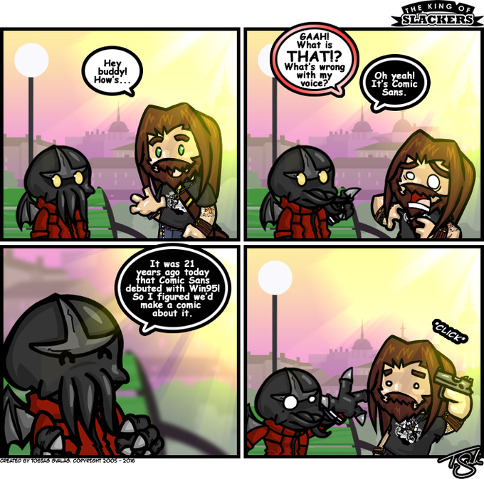 I'm a bit late on this one, but Aug 25th was Comicsans Day... 🤨 #comic #webcomics #webcomicart #comics #comicstrip #font #art #artist #artistsontwitter #artmoots #artistsontwitter #イラスト