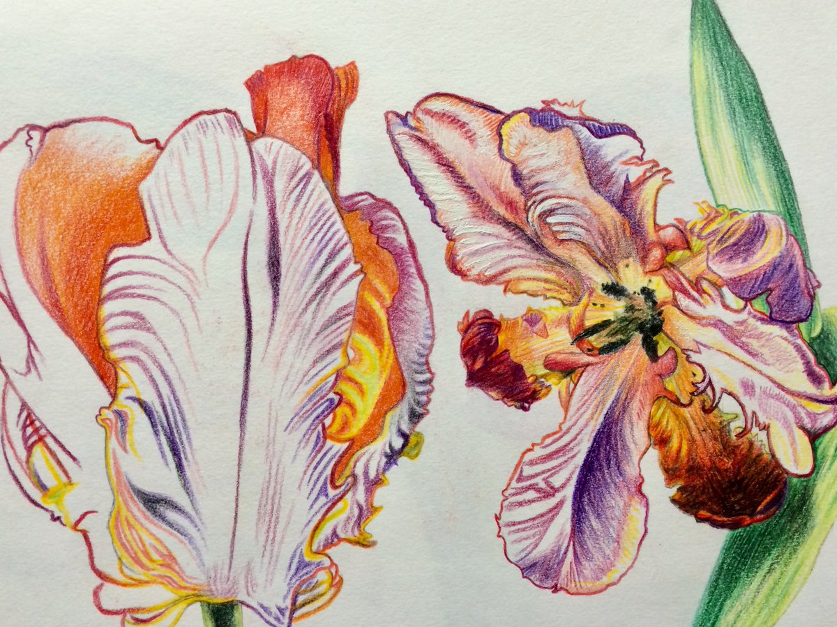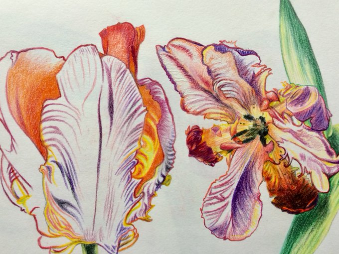 Parrot tulips Watercolour pencil in sketchbook #wednesdaymorning #flowers #sketch #artist #artistontwitter #artistsoninstagram