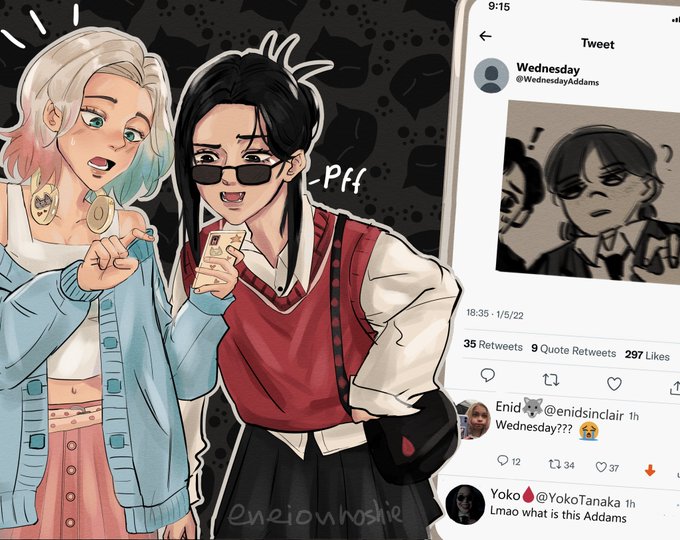 Behind every gay person is a gayer, more evil person #wenclair #wenclairfanart #Wednesday #wednesdaynetflix #wednesdayaddams #enidsinclair
