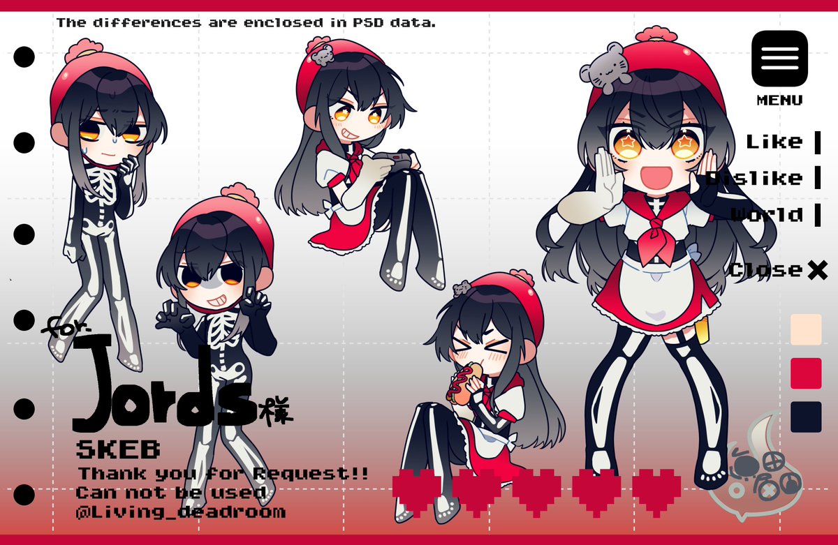 Skebを納品しました! 🎨:Jordsさん(#weenorart) 衣装デザインが二つあったので、せっかくなのでどちらも描かせて頂きました!💪 skeb.jp/@Living_deadro…