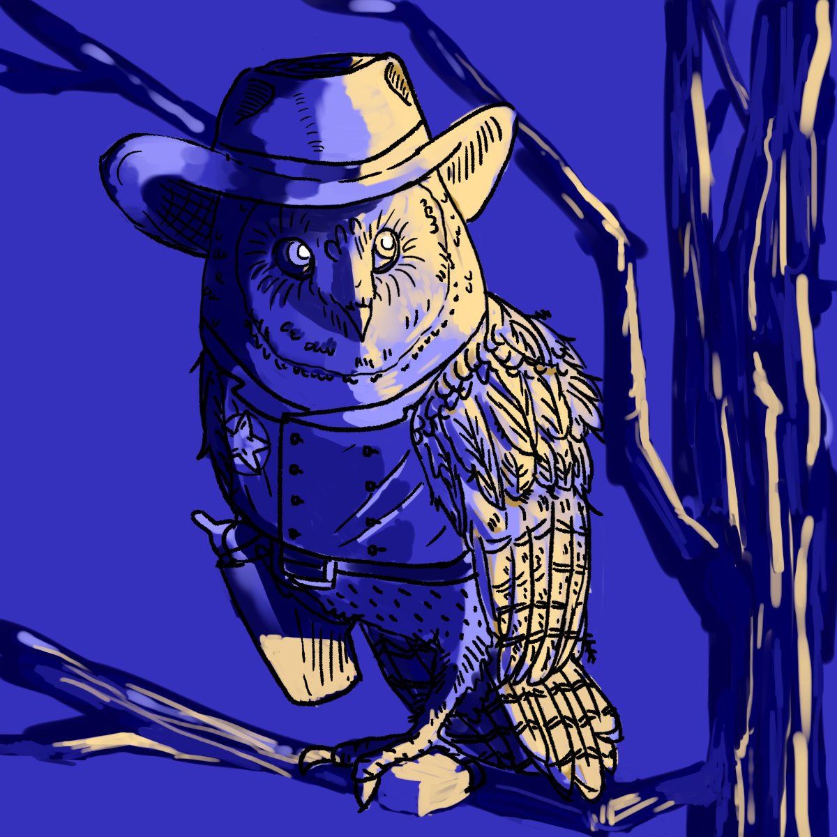 Owl Marshall, the Fastest Wing in the West. Commissions open #art #sketchaday #sketch #drawing #owl #bird #cowboy #westerns #fantasyart #dnd #criticalrolefanart #criticalrole #digitalart #artistontwitter #rpgart #character #characterdesign #characterart #conceptart #artist