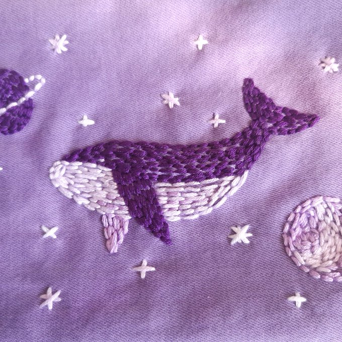 Purple whalien 🐋🌌💜 Another embroidered zip pouch I made! I really like the starry fabric in the inside ☆ #btsfanart #bts #whalien52 #embroidery