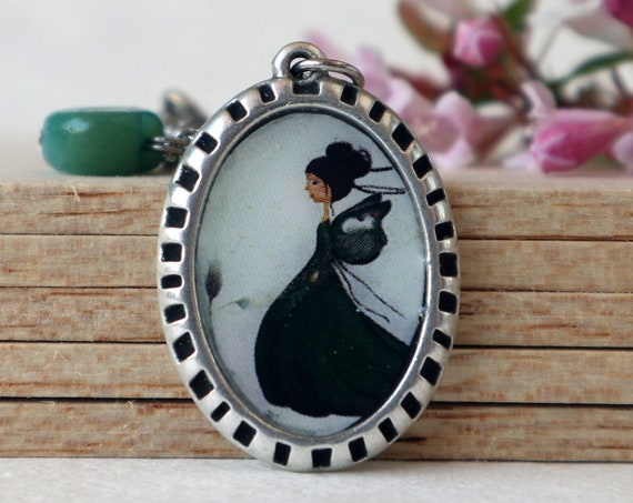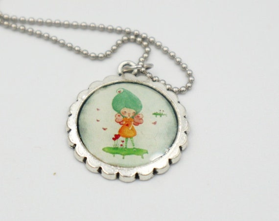 Green fairy pendant necklace tinyurl.com/yzolh8jv via @EtsySocial #etsy #etsyfinds #whimsicalart #illustratedpendant