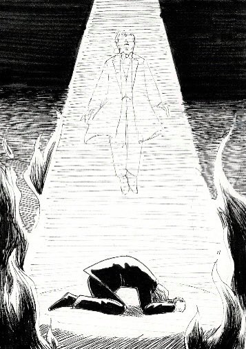 #Inktober No. 5 - Self-Sacrifice Ink on grey paper, A4 From the #whumptober2021 prompt list. #Sherlock #BenedictCumberbatch #drugs #hurt #SherlockHolmes I am flattered if you retweet, but do NOT post my art on other sites/social media or use without my written permission.