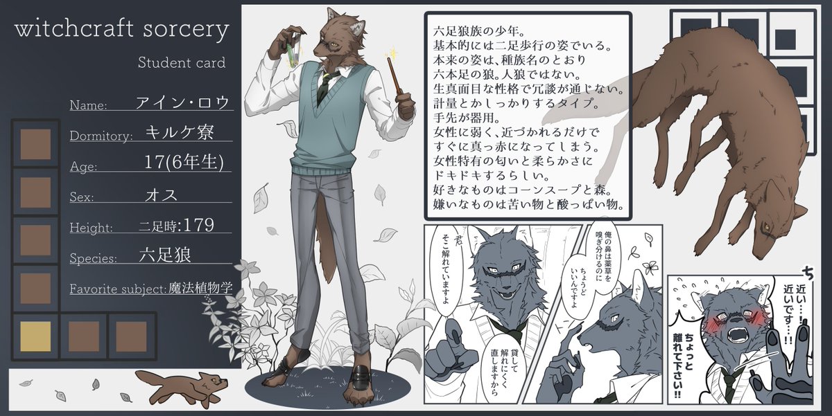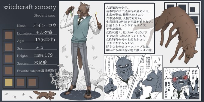 #wicrso_CS #wicrso_生徒 #wicrso_6年生 素敵企画(@Witchcraft430AA )様に失礼します!キルケ寮6年生、生真面目で女性に弱い六足狼族の子です!よろしくお願いします!