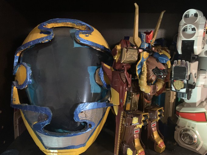 First ranger helmet. Custom ranger my kiddos came up with. Hoping to have the new helmet and my wife’s and I mystic force helmets up here! #PowerRangers #mmpr #mysticforce #powerrangerhelmet #cosplay #customranger #wildforce